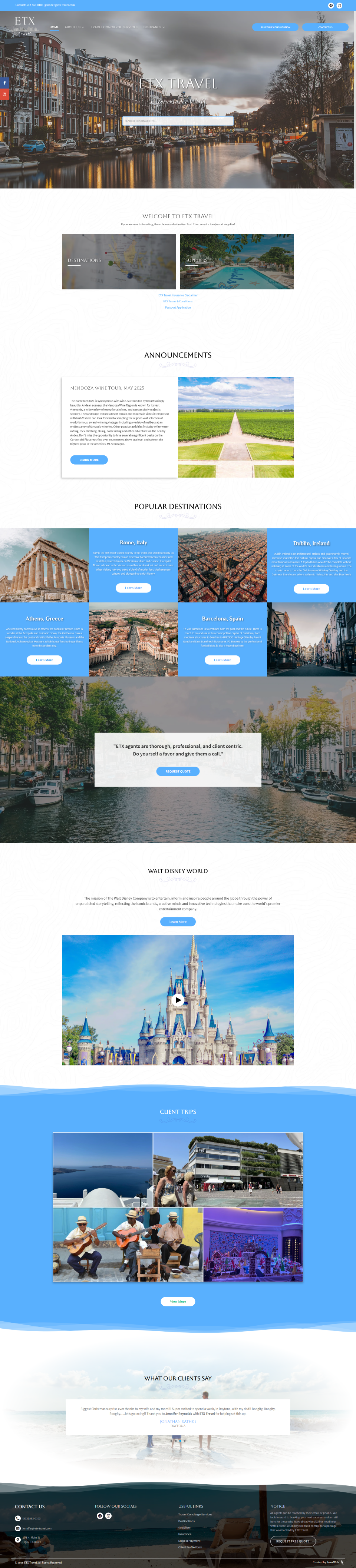 ETX Travel, a small yet dynamic travel agency in Elgin, TX, now boasts a user-friendly website designed to significantly enhance their online presence and customer engagement.